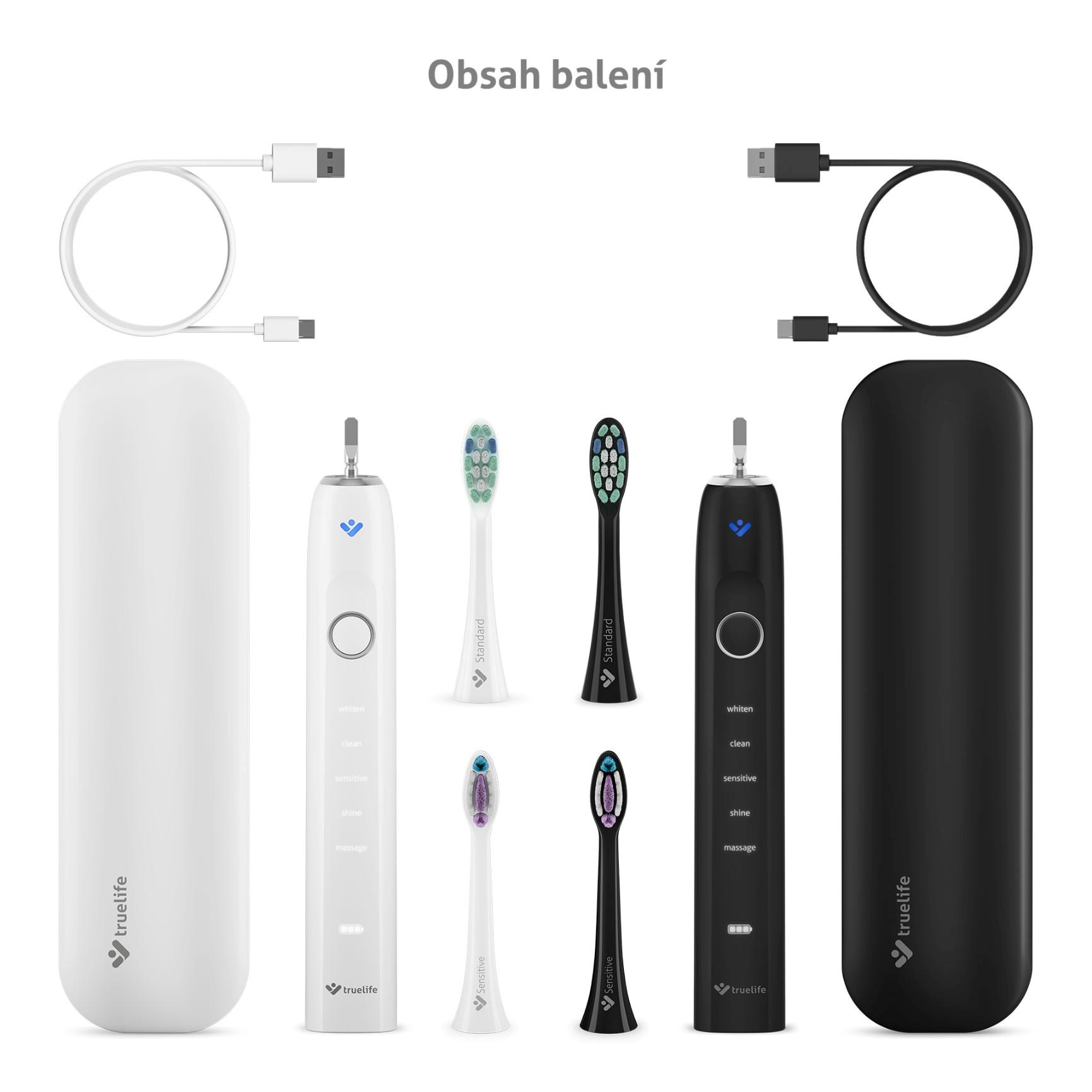 Zdravý úsmev je vizitkou nás všetkých. S balením dvoch sonických kefiek TrueLife SonicBrush Clean70 UV Duo bude starostlivosť o zuby a ďasná nielen dôkladná, ale navyše aj príjemná. Každá z kefiek čistí zuby rýchlosťou až 90 000 pohybov za minútu, čím odstráni až 12× viac zubného povlaku ako manuálna kefka. Sonická technológia SonicTrue® jemnými vibráciami čistí plôšky zubov a vďaka víreniu vody s pastou vytvára mikrobublinky, ktoré preniknú aj do medzizubných priestorov. Tlakový senzor s technológiou SmartPressure® stráži ideálny tlak a varuje pred nadmerným zaťažením ďasien či skloviny. Dobíjacie puzdro s UV sterilizáciou efektívne ničí až 99,9% baktérií a vírusov na hlaviciach. Kefky vydržia až 70 dní na jedno nabitie, disponujú 5 režimami čistenia a 2 typy hlavíc (Standard a Sensitive). Chytrý časovač stráži odporúčané 2 minúty čistenia a funkcia pamäte uchová posledný zvolený režim. Vďaka vysoko citlivému vibračnému senzoru sa kefka automaticky aktivuje a rozsvieti, akonáhle ju vezmete do ruky. Špeciálna jemne pogumovaná povrchová úprava rukoväte je príjemná na dotyk a zabraňuje kĺzaniu aj pri použití s vodou.