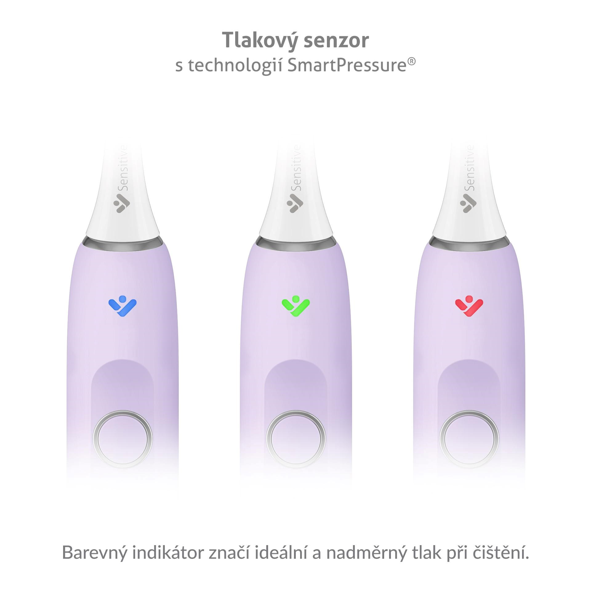 Aby prílišný tlak hlavice na zuby a ďasná nezpôsobil zdravotné ťažkosti, je kefka vybavená tlakovým senzorom, ktorý rozpozná mieru tlaku a farebným indikátorom viditeľným z prednej aj zadnej strany upozorní, či je potrebné pri čistení zmierniť tlak.
