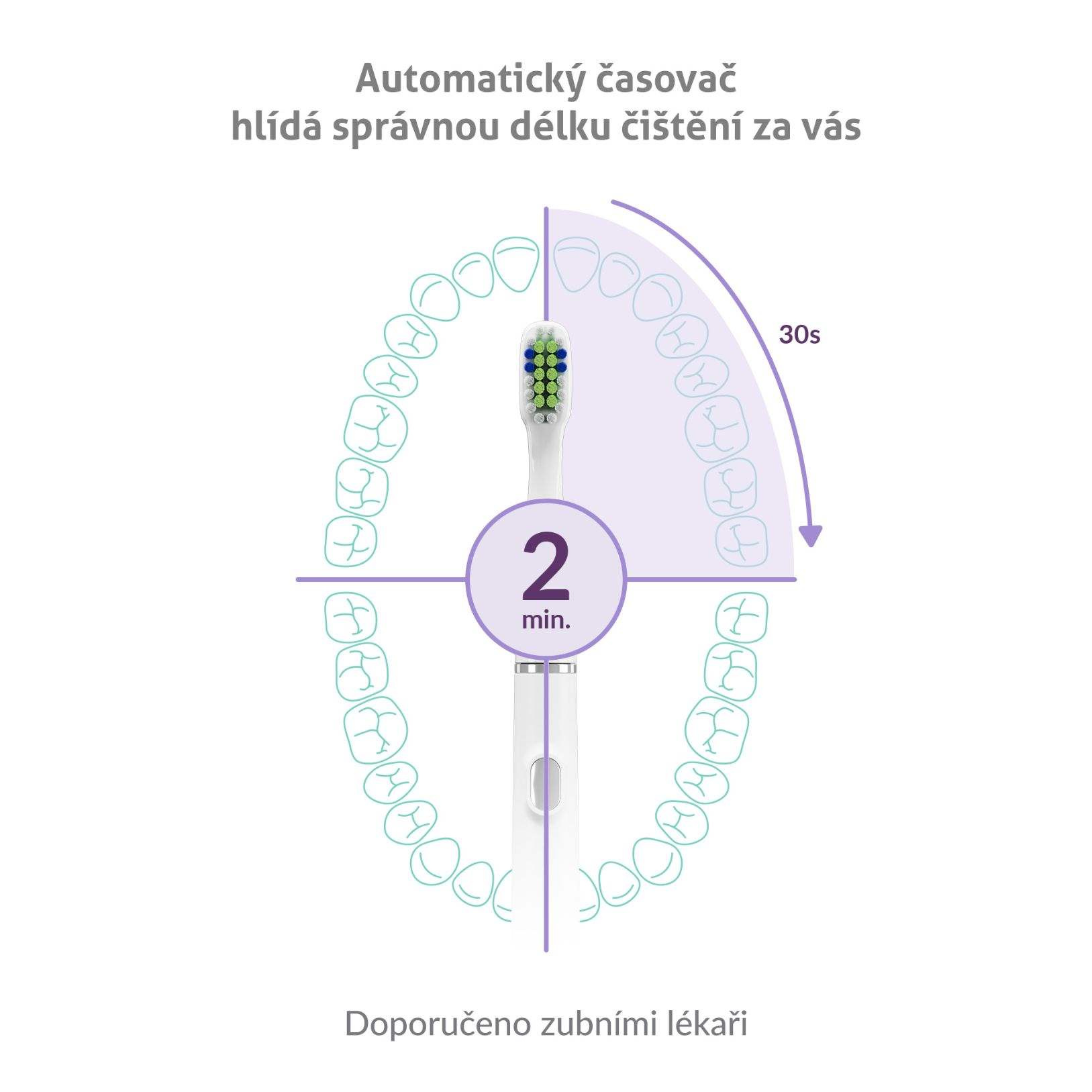 Nastavený 2-minútový interval sa delí do štyroch 30-sekundových sekcií, kedy po každej z nich nastane krátka pauza upozorňujúca, že je čas prejsť na čistenie ďalšej časti chrupu.