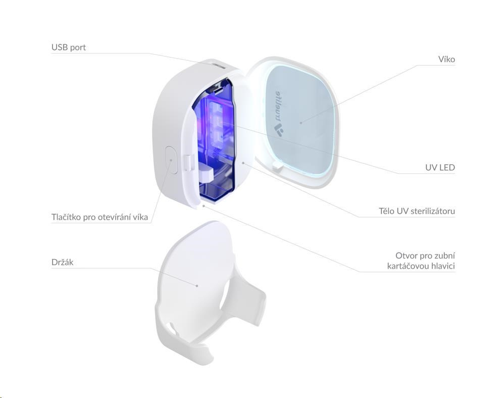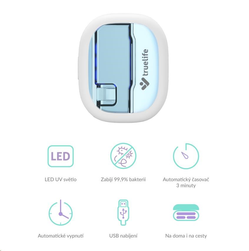 UV sterilizátor od TrueLife je malý prístroj, ktorý efektívne ničí baktérie usadzujúce sa na hlavách zubných kefiek. Vďaka UV-C žiareniu s vlnovou dĺžkou 200-275 nm preniká k membránam baktérií, vírusov a pliesní a zabraňuje ich šíreniu. Je kompatibilný s väčšinou hlavíc elektrických aj manuálnych kefiek na trhu.