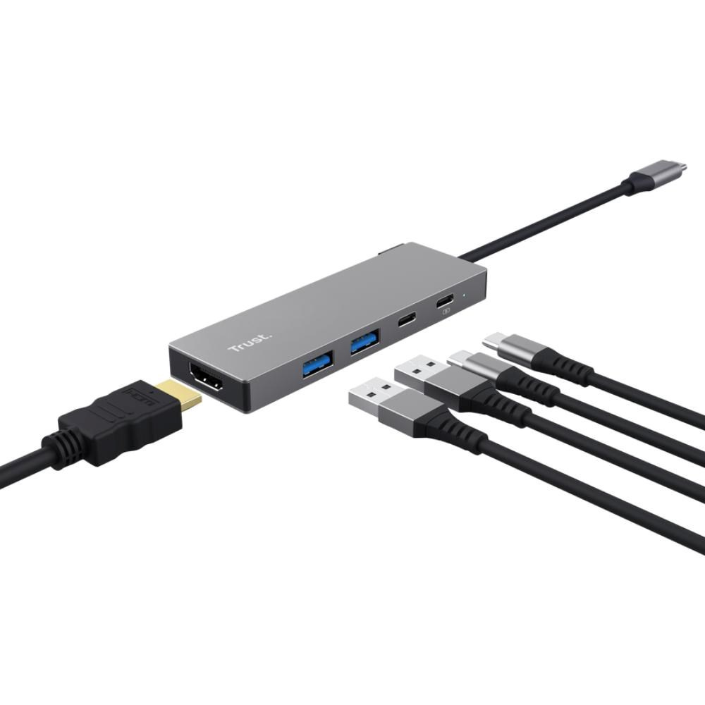 Multiportový adaptér 5v1 na pridanie portov HDMI, USB-C a USB-A k notebooku pomocou jediného pripojenia USB-C.