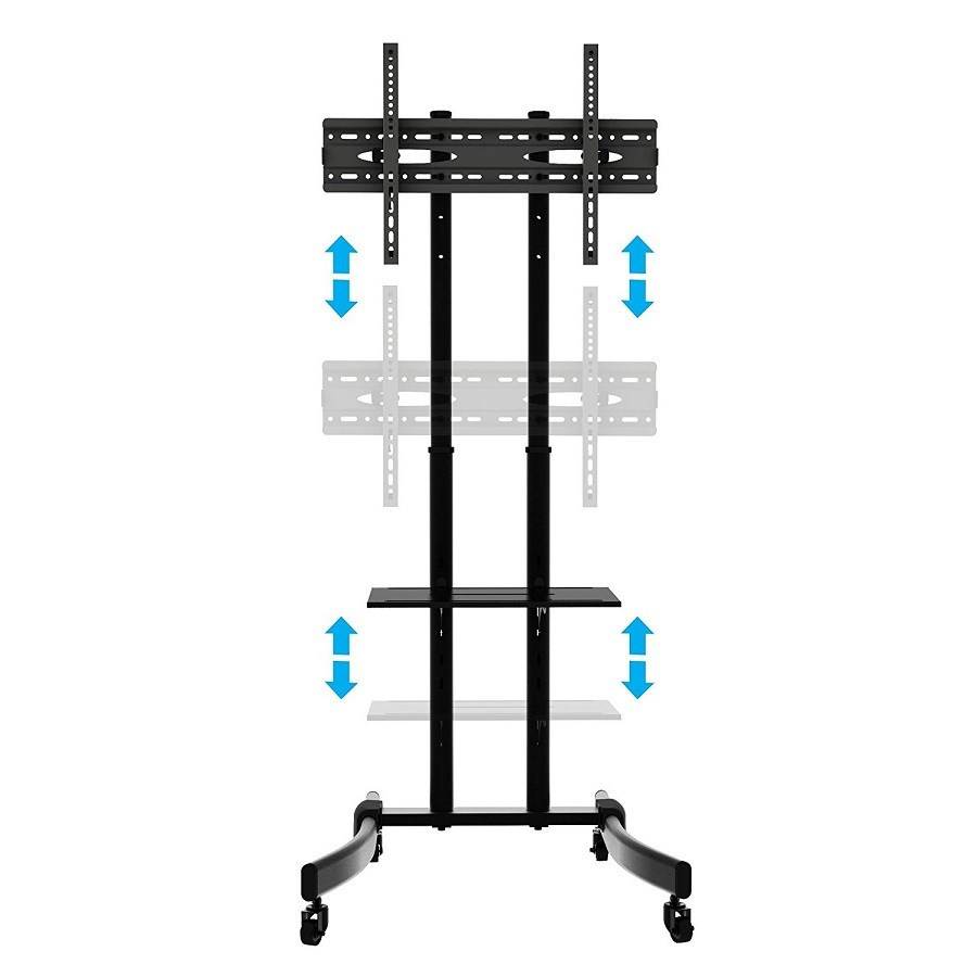 Podlahový stojan na TV pojazdný Fiber Mounts M7C39 Podlahový pojazdný stojan na televízory 32" až 65", nastaviteľná výška televízie 89/96/114cm, polička 485x295mm, pojazdný, VESA 200x100 až 600x400, nosnosť 40kg Pekný stojan na televízory s uhlopriečkou 32-65". Stojan má pevnú robustnú konštrukciu, zavešenie televízie je spoľahlivé a bezpečné. Vďaka kolieskam je manipulácia so stojanom jednoduchá a pohodlná, aretácia zabezpečí stojan na mieste. Stojan dodávame vrátane poličky na príslušenstvo, na ktorú môžete dať notebook, počítač, hernú konzolu alebo prehrávač. Konštrukcia umožňuje 3 výškové polohy obrazovky, rovnako tak môžete upraviť aj výšku poličky. Držiak podporuje VESA štandardy 200x100 až 600x400 pre upevnenie televízie. Nosnosť stojanu je 40kg. Záručná doba 5 rokov. Podlahový pojazdný stojan na televízor Fiber Mounts M7C39 Technické údaje: nosnosť 40kg na televízory a monitory s uhlopriečkou 32" až 65" podporuje VESA štandardy 200x100 až 600x400 celková výška stojanu bez obrazovky 1140mm výškové nastavenie obrazovky 880 / 960 / 1040mm (výška po stred obrazovky) polička na príslušenstvo 485x295mm nastavenie výšky poličky pojazdové kolieska s aretáciou pevná konštrukcia vynikajúca stabilita a bezpečnosť farebné prevedenie čierne záručná doba 5 rokov Pojazdný stojan s nastaviteľnou výškou televízie a výškou poličky Fiber Mounts M7C39 Televízny stojan M7C39 podporuje VESA štandardy: VESA 200x100 VESA 200x200 VESA 300x200 a 200x300 VESA 300x300 VESA 400x200 a 200x400 VESA 400x300 a 300x400 VESA 400x400 VESA 600x400