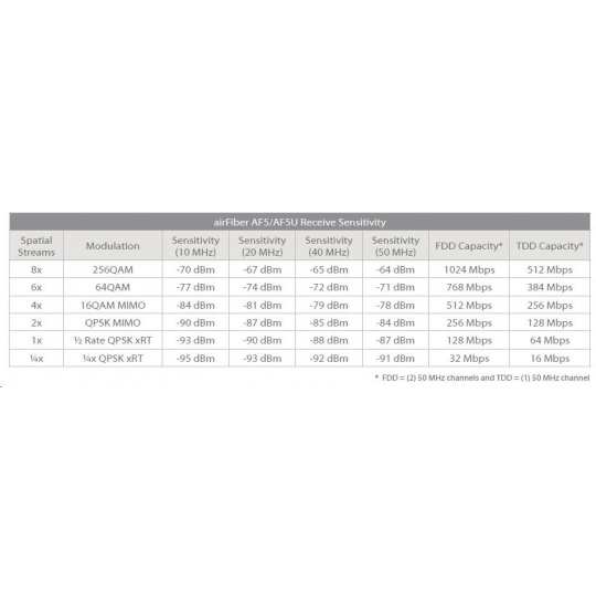 airFiber AF5/AF5U Receive Sensitivity