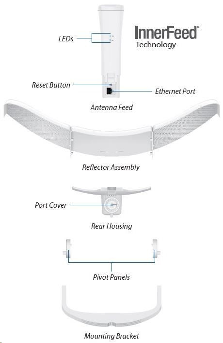 LiteBeam 5AC-LR spája patentované hardvérové a softvérové technológie do cenovo dostupného zariadenia. Medzi výhody patrí technológia InnerFeed, protokol airMAX TDMA, vylepšené uchytenie a zabudovaná vodováha na veľmi rýchle a správne nasadenie, ako aj veľmi kompaktné rozmery na úspornú prepravu.