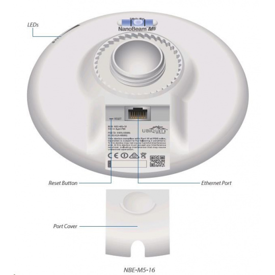 nanoBeam M5 2x16dBi je nová kompaktná jednotka s elegantným dizajnom a vysokým výkonom. Vnútri sa nachádza procesor MIPS Atheros 74KC s frekvenciou 560 MHz, za ktorým nasleduje 64 MB operačnej pamäte DDR2 a 8 MB pamäte Flash. Sieťový port podporuje 10/100 Ethernet a môže napájať jednotku pomocou 24V/0,5A pasívneho PoE (aktívne PoE podľa 802.3af nie je podporovaný). 802.11n a spätnú kompatibilitu s 802.11a. Vďaka technológii AirMAX (protokol TDMA) je možné pripojiť sa k prístupovému bodu s nízkou latenciou a vysokou priepustnosťou bezdrôtového pripojenia. Teoretická maximálna priepustnosť jednotky je 300 Mbit (MCS15, 802.11n, 2x2MIMO, pri šírke kanála 40 MHz).  Technické špecifikácie: