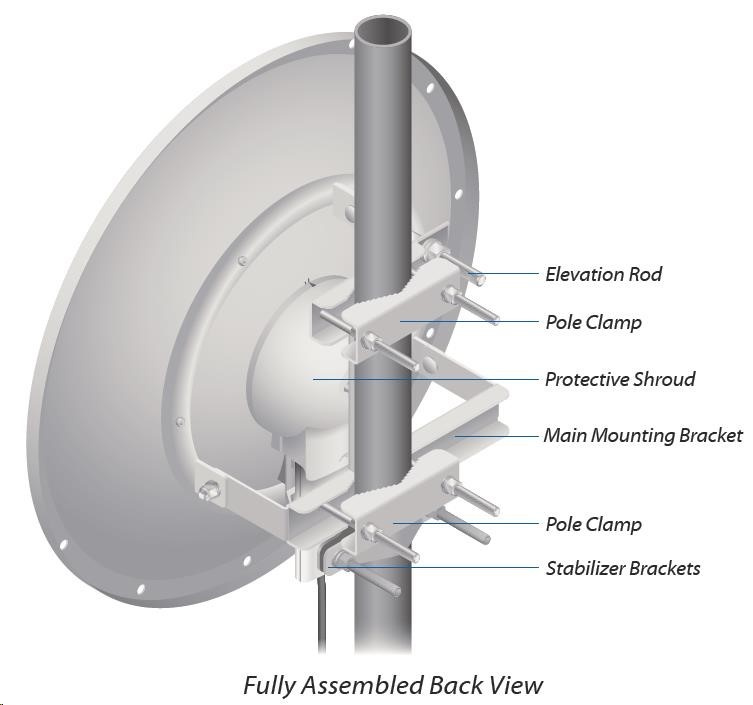 dvojpolarizačná 5GHz anténa so ziskom 30 dBi vhodná pre jednotku Rocket M5. Využíva horizontálnu aj vertikálnu polarizáciu, čím nahrádza dve samostatné antény a šetrí náklady na prenájom miesta pre anténu. Anténa je vhodná na jednoduché vytváranie spojení PtP. Dodáva sa aj s vodotesným príslušenstvom na pripojenie k jednotke Rocket M5.