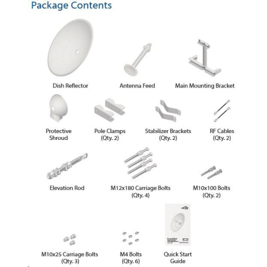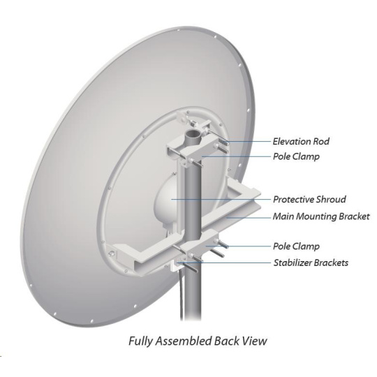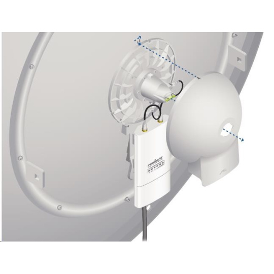 dvojpolarizačná 5GHz anténa so ziskom 34 dBi vhodná pre jednotku Rocket M5. Využíva horizontálnu aj vertikálnu polarizáciu, čím nahrádza dve samostatné antény a šetrí náklady na prenájom miesta pre anténu. Anténa je vhodná na jednoduché vytváranie spojení PtP. Dodáva sa aj s vodotesným príslušenstvom na pripojenie k jednotke Rocket M5.
