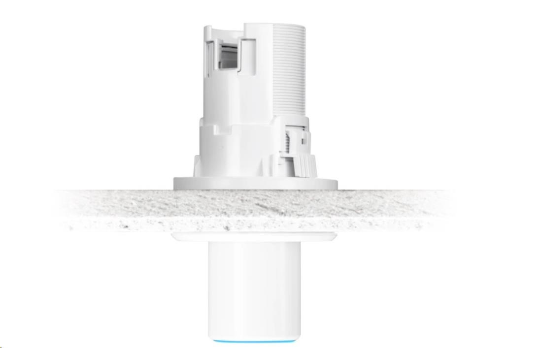 Tento jednoduchý držiak umožňuje inštaláciu a zapustenie prístupového bodu UniFi FlexHD do sadrokartónových podhľadov. Držiak vyzerá veľmi diskrétne a má nízkoprofilový vzhľad. Bezskrutkový uzamykací mechanizmus sa ľahko prispôsobí rôznym hrúbkam stropných alebo iných dosiek.
