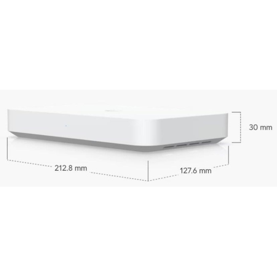 Popis produktu UXG-Fiber je kompaktní 10 gigabitový router, který disponuje (1) WAN 10Gbps portem, (2) 10Gbps SFP+ porty (1x WAN, 1x LAN) a (4) LAN 1/2.5Gbps porty s jedním PoE-OUT portem s podporou PoE+ 802.3af/at. Kompaktní, ale výkonné provedení tak podporuje funkci multi-WAN včetně možnosti load balancing, nechybí podpora IDS/IPS. Router má implementovanou podporu různých typů VPN, včetně site-to-site VPN. Napájení je řešeno prostřednictvím napájecího adaptéru 54V/1,1A, napájecí adaptér je součástí balení. Klíčové vlastnosti • 5Gbps routing s podporou IDS/IPS • (1) WAN 10Gbps + (1) 10Gbps SFP+ WAN • (4) 2.5Gbps LAN + (1) 10Gbps SFP+ • Multi-WAN + load balancing • Podpora VPN, včetně site-to-site VPN Obsah balení • Zařízení • Patch kabel • Napájecí adaptér 54V/1,1A Technické parametry Konektory a rozhraní Rychlosti WAN:(1) 1/2.5/10Gbps + (1) 10Gbps SFP+ Možnost více WAN:Ano Rychlost LAN:(4) 10/100/1000/2500Mbps Gigabit LAN:Ano Optické rozhraní:(2) 10Gbps Napájení Typ napájení:DC konektor Typy PoE:PoE-Out (pouze) Podporované PoE-Out standardy:802.3af, 802.3at Počet PoE Out portů:1 Max. spotřeba energie [W]:25 Napájení přes konektor/svorkovnici:54V / 1,1A Fyzické charakteristiky Provedení:Desktop Šasi:Plastové Tlačítka:Reset Provozní teplota [°C]:0 až 40 Hmotnost [g]:605 Šířka [mm]:213 Výška [mm]:30 Hloubka [mm]:128 Hardware CPU:ARM Cortex-A73 Frekvence CPU [MHz]:2200 Počet CPU jader:4 RAM [MB]:2048 Software Podporované VPN:L2TP, IPSec, OpenVPN, WireGuard Management:UniFi Network Podpora IPv6:Ano.