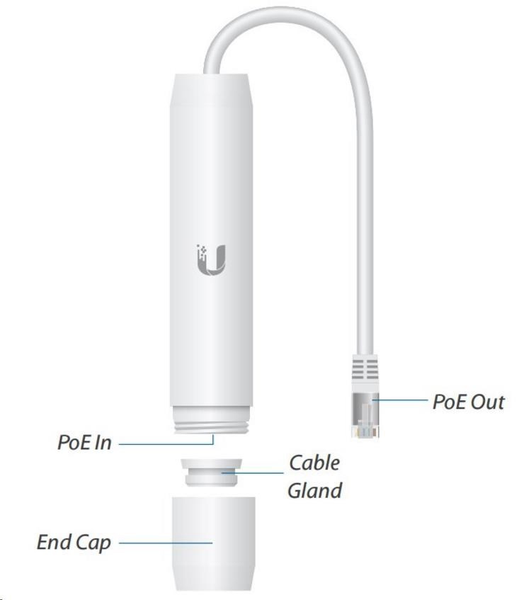 UBNT INS-3AF-O-G [Gigabitový vonkajší PoE konvertor z aktívneho PoE 802.3af na pasívne 24V/0,5A]