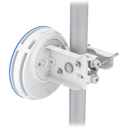 Popis produktu UniFi Building to Building Bridge XG je velice kompaktní 60 GHz point-to-point (PtP) zařízení s podporou 802.11ad/ay norem a vestavěnou 5 GHz zálohou (WiFi 5 - 802.11ac) od Ubiquiti Networks s dosahem do vzdálenosti 500m+ je ideální pro spojení dvou budov na krátkou vzdálenost. Zařízení je vybaveno Gigabitovým LAN portem s podporou PoE, jedním SFP+ portem a Bluetooth pro jednoduché nastavení z mobilu přes UniFi Network aplikace. Zařízení podporuje pouze mód bridge a v 60GHz spektru podporuje 2160 i 4320 MHz šířku kanálu. Maximální udávaná propustnost výrobcem je 6 Gbps. Klíčové vlastnosti • Kompaktní rozměry - 192 × 192 × 59 mm • Spektrum 60 GHz s nízkým rušením - 58 až 64 GHz • Dosah 500 m+ • Propustnost 6 Gbps v 60 GHz, 866 Mbps v pásmu 5 GHz • Podporuje channel bonding vyšší propustnosti - 2160 a 4320 MHz • Podporované kanály: 58320, 59400, 60480, 61560, 62640, 63720, 64800- závisí na místě použití • Gigabitový LAN port s podporou pasivního PoE (48V DC), max. spotřeba 31.2W • Nastavení přes UniFi Network aplikace od verze 6.3 Obsah balení • (2) Zařízení • (2) Držák s jemným lazením • (2) Napájecí PoE adaptér 48 V/0,65 A • (2) Napájecí kabel Technické parametry Bezdrátové vlastnosti Šířka kanálu [MHz]:2160, 4320 WiFi standardy:802.11ad, 802.11ay, 802.11ac Přenosová rychlost - 5GHz [Mb/s]:866 Přenosová rychlost - 60GHz [Mb/s]:6000 Šifrování:WPA2 AES Konektory a rozhraní Rychlost LAN:(1) 10/100/1000Mbps Optické rozhraní:(1) 1/10Gbps Ostatní:Bluetooth Napájení Napájení přes PoE:802.3bt, 48V DC Typ napájení:PoE Max. spotřeba energie [W]:31 Fyzické charakteristiky Stupeň krytí:IPX6 Tlačítka:Reset Provozní teplota [°C]:-40 až 55 Hmotnost [g]:1700 Šířka [mm]:159 Výška [mm]:159 Hloubka [mm]:59 Software Výchozí IP adresa:Dynamická z DHCP Výchozí jméno a heslo:ubnt / ubnt.