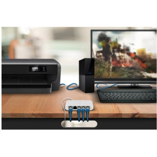 Jeho najväčšou výhodou je gigabitový POE IN na porte 1 na jednoduché rozšírenie siete aj na miestach, kde nie je možné vybudovať elektrickú zásuvku. Prepínač môže byť napájaný aktívne (802.3af/at) a pasívne pomocou adaptéra 44-57 V. Okrem PoE možno prepínač napájať aj prostredníctvom adaptéra USB-C so špecifikáciou 5 V/1 A.