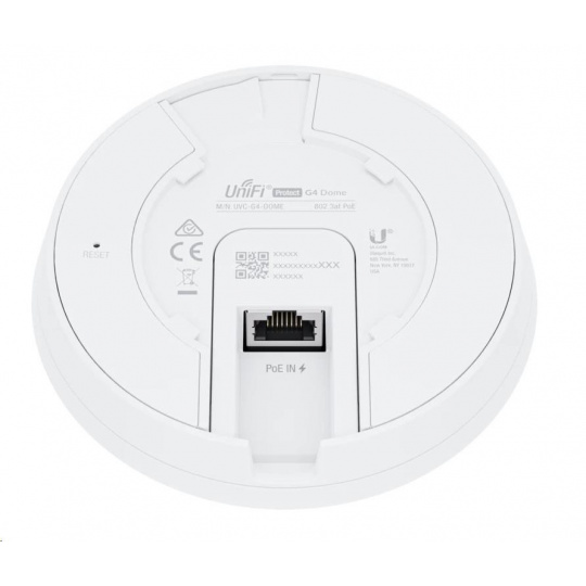 Kamera UniFi Protect G4 Dome má 4MP snímač (2688 x 1512px) s 24 snímkami za sekundu, pevný objektív (cca 4 mm), IR prísvit na nočné videnie, mikrofón a reproduktor. Kamera má veľmi robustné kovové telo, odolnosť proti vandalizmu IK08 a krytie IPx4 proti poveternostným vplyvom. K sieti sa pripája pomocou gigabitového ethernetového portu, ktorý podporuje napájanie cez kábel - 802.3af PoE.