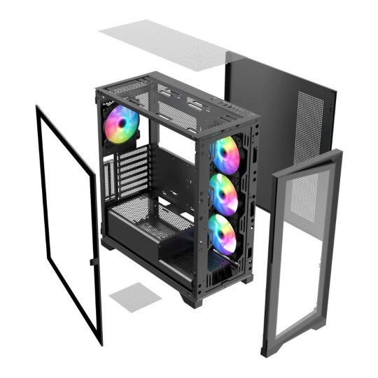 - Skriňa ATX z tvrdeného skla s 360° panoramatickým výhľadom