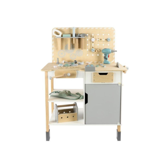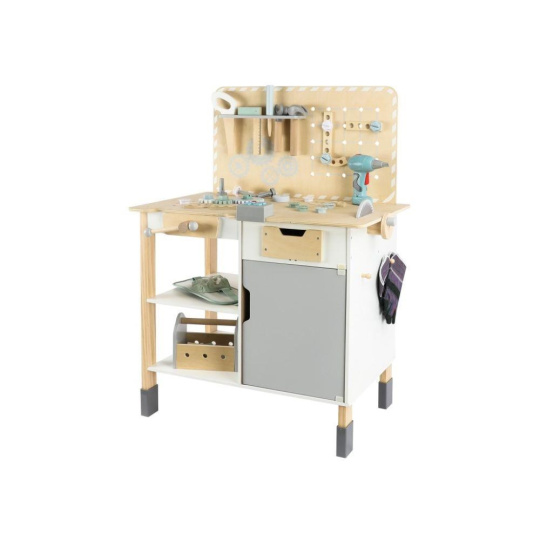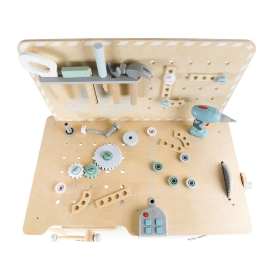 Velký dřevěný dětský ponk s nářadím a rozšířeným příslušenstvím + opasek na nářadí ZDARMA