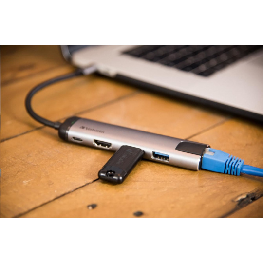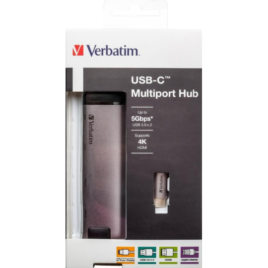 VERBATIM 49141 Multiportový USB-C HUB, 2x USB 3.0, 1x USB-C, HDMI, LAN, šedý dok
