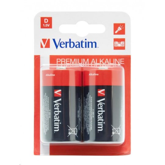 VERBATIM Alkalické baterie D, 2 PACK / LR20