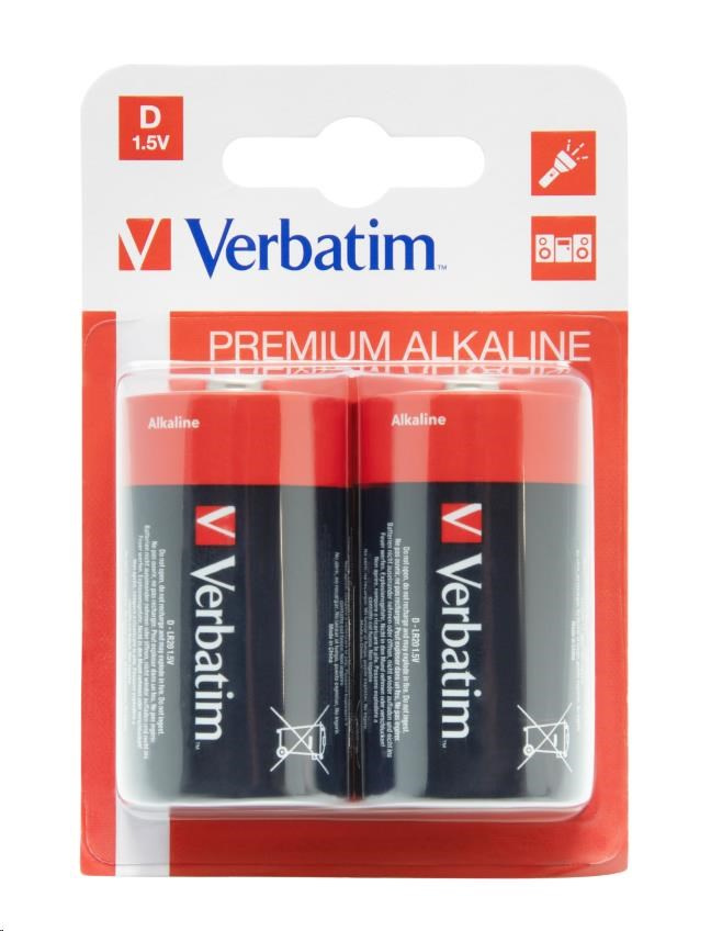 VERBATIM Alkalické baterie D, 2 PACK / LR20
