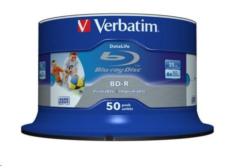 VERBATIM BD-R SL Datalife (50-pack)Blu-Ray/Spindle/6x/25GB Wide Printable