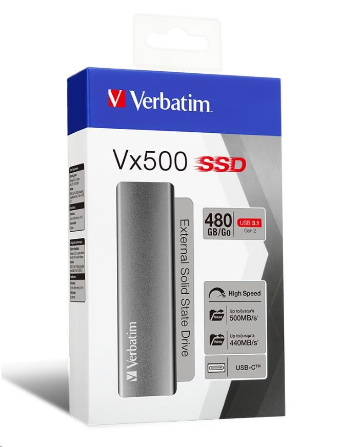 Externý disk SSD Verbatim Vx500 využíva vysokorýchlostnú pamäť flash a rozhranie USB 3.1 Riadiaca jednotka 2. generácie, optimalizovaná na poskytovanie bezkonkurenčného výkonu.