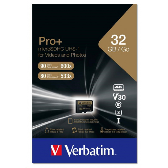 Pamäťové karty microSD Verbatim Pro+ umožňujú zachytávať video v najvyššom rozlíšení a poskytujú najvyšší výkon vašim akčným kamerám, videokamerám, smartfónom alebo tabletom.