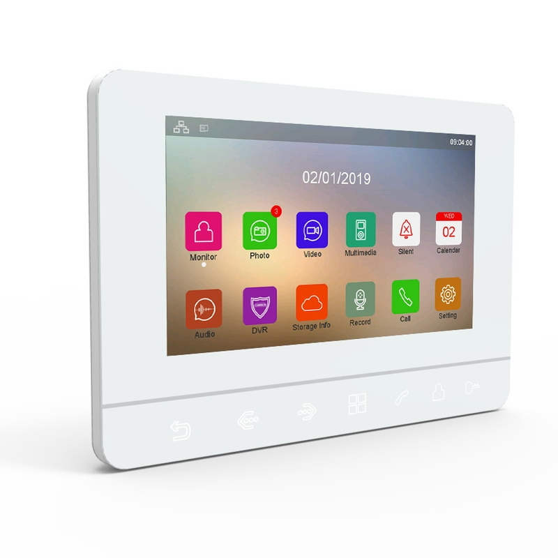 Monitor so 7“ LCD obrazovkou pre sady domových videotelefonov VERIA séria 2-WIRE. Vďaka modernej technológii umožňuje iba 2vodičové prepojenie so vstupnou stanicou alebo ďalším monitorom.