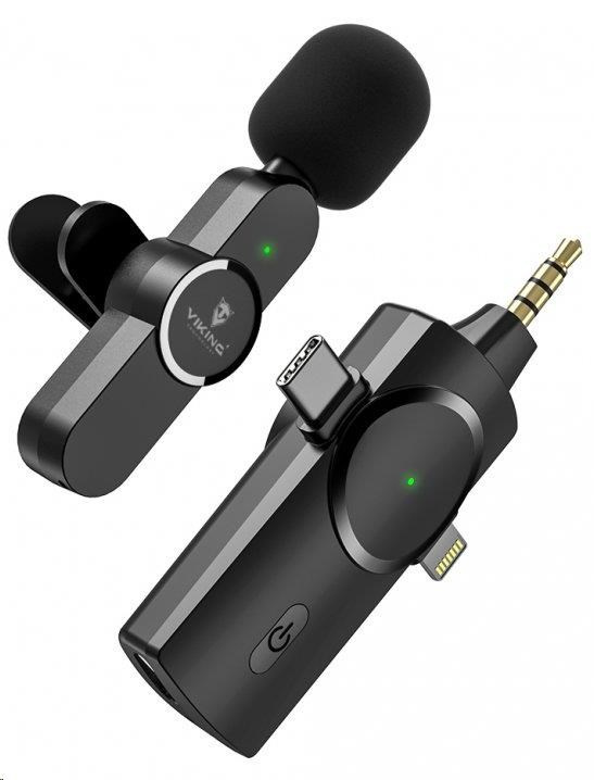Bezdrôtový mikrofón Viking s klipom M360, USB-C / Lightning / 3,5 mm jack
