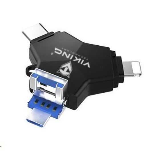 USB Flash disk Viking 3.0 4v1 s konektorom Lightning/Micro USB/USB/USB-C, 128 GB, čierna