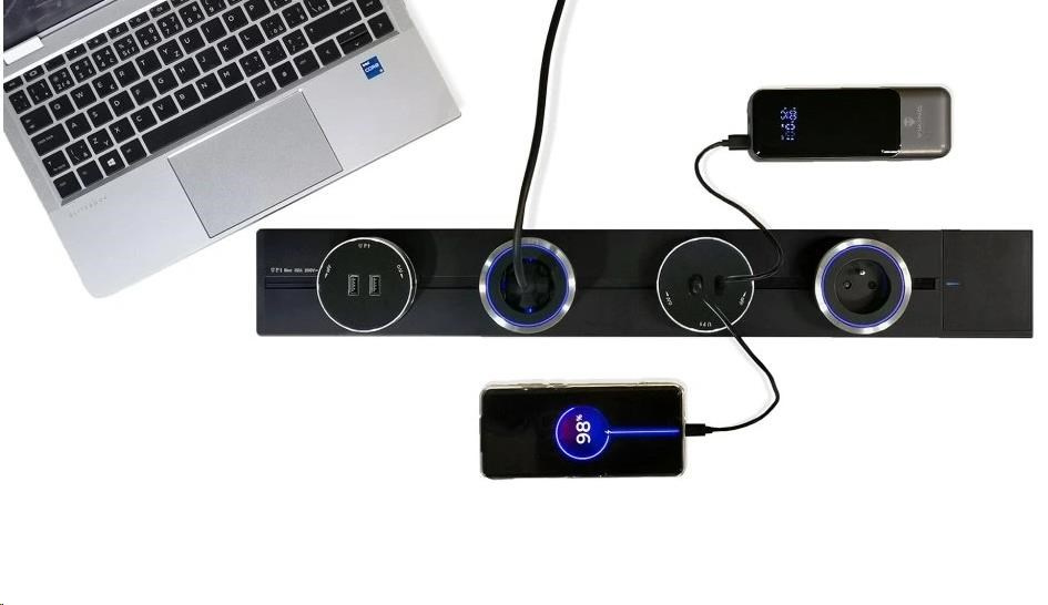 - Bezpečný a odolný dizajn: Zásuvková lišta je vyrobená z odolnej hliníkovej zliatiny, ktorá zabezpečuje dlhú životnosť a ochranu pred prehriatím. Tesníaca páska chráni proti prachu a náhodnému kontaktu, čím znižuje riziko úrazu elektrickým prúdom.