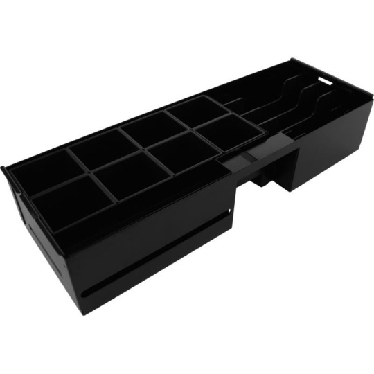 - Vy´jmateľný kovový zásobník na bankovky s plastovými oddelovačmi prihrádok