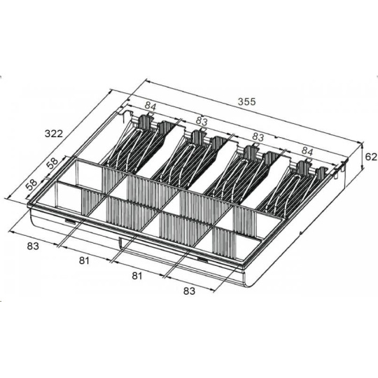 Slúži na uloženie mincí, dodatočne je možné zakúpiť nastaviteľné priečky na zvýšenie počtu priehradiek pre jednotlivé mince.