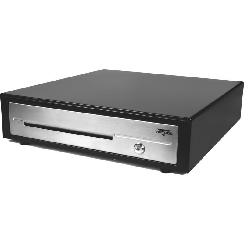 Pokladničná zásuvka Virtuos C430D - s káblom, kovové držiaky, nerezový panel, 9-24V, čierna