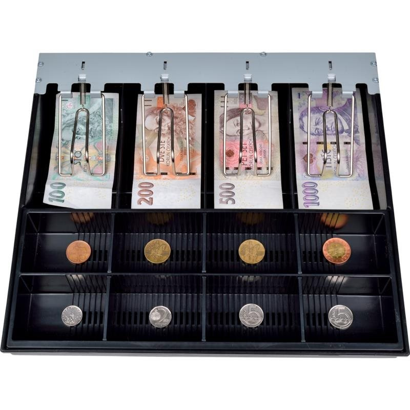 Vyberateľný zásobník na mince a priehradka na bankovky s voľne nastaviteľnými priehradkami