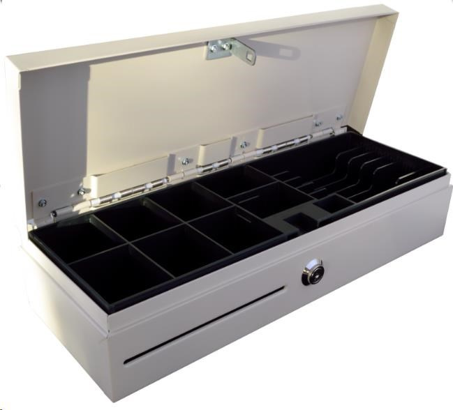 Hlavným dôvodom výberu pokladničnej zásuvky s výklopným vrchnákom (t. j. s horným otvorom) výrazne šetrí miesto. Všetky vlastnosti a funkcie klasickej zásuvky s výsuvným mechanizmom sú zachované.