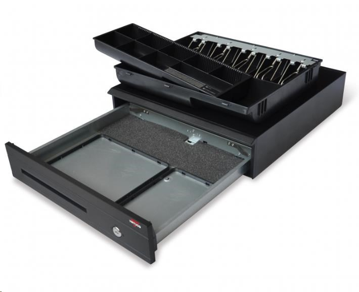Pokladničná zásuvka Virtuos C425C, kovová. držiaky, 5-9V, čierne, bez kábla