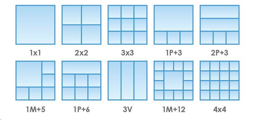 monitorovacie zariadenie pre zobrazenie až 32 kamier (až 20Mpix kamera), 4K video výstup HDMI, H.265, dekódovacia kapacita 3840x2160@90fps (3-CH) alebo 1920x1080@360fps (12-CH), USB
