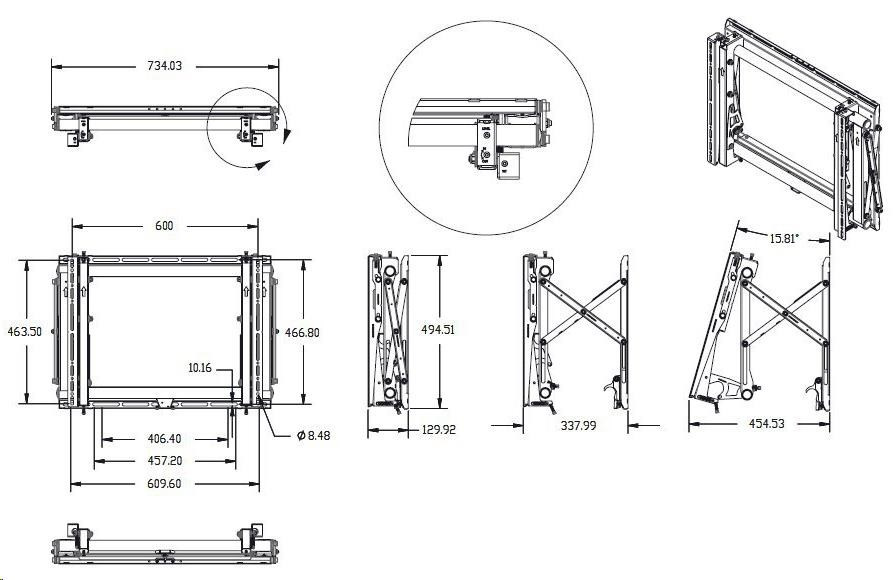 Systém pre montáž videosteny z displejov s hmotnosťou do 72 kg. Je vybavený pružinovým mechanizmom, ktorý po stlačení vysunie displej na nožnicovom mechanizme o 21 cm dopredu pre jednoduchú výmenu a servis jednotlivých prvkov videosteny
