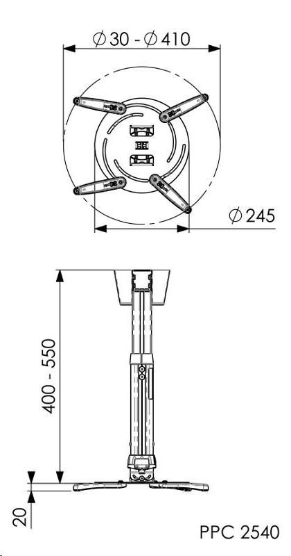 Teleskopický stropný držiak pre veľký projektor 40-55 cm