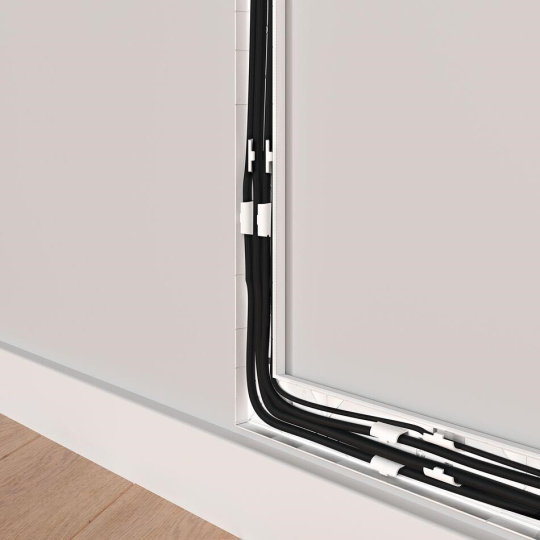 S kabelovou lištou TVA 6000 môžete bezpečne a upratané skryť štyri káble mimo dosah detí a domácich zvierat. Dizajn je štýlový a veľmi plochý s minimálnou vzdialenosťou od steny len 14 mm a dĺžkou 80 cm. Je samozrejme vhodný pre ukrytie rôznych typov káblov, napríklad HDMI, USB, AUX alebo napájacích káblov.