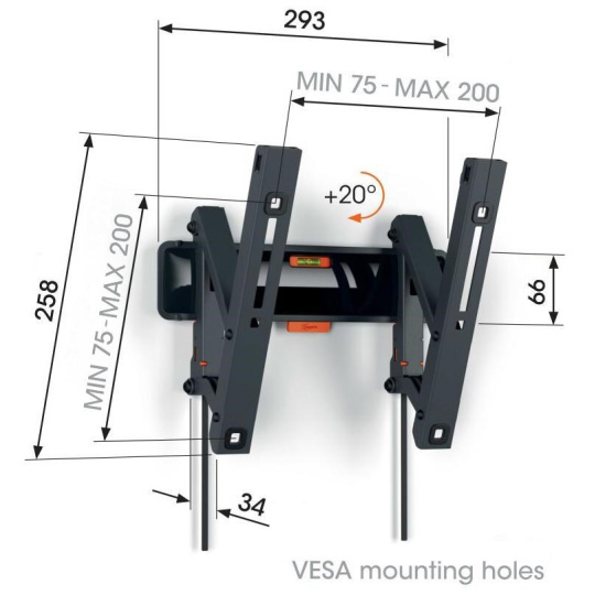 S násteným držiakom TVM 3213 rady COMFORT Tilt volíte štýl, bezpečnosť a príjemný zážitok zo sledovania. Nástenný držiak je ideálny pre prípady, keď je televízor umiestnený na stene o niečo vyššie, napríklad v spálni. Môžete ho nakloniť až o 20° a vytvoriť tak ideálny pozorovací uhol. Nástenný držiak je vhodný pre televízory s uhlopriečkou od 19 do 43 palcov a hmotnosťou do 15 kg. Televízor si naozaj užijete, až keď si ste istí, že je pekne a bezpečne namontovaný. Štýlový držiak TVM 3213 vám túto istotu poskytne. Nástenný držiak je navrhnutý a vyrobený na dlhodobé intenzívne používanie.