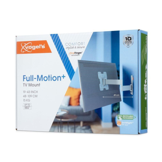 S držiakom TVM 3243 si môžete vychutnať sledovanie TV zo všetkých uhlov. Maximálny uhol natočenia do strán závisí od šírky vašej TV, ale kĺbiky držiaka umožňujú až 180°. Vďaka funkcii One-Finger™ Movement môžete obrazovku otočiť do ideálnej polohy jediným prstom. Špeciálne ložiská zabezpečujú, že sa nástenný držiak otáča mimoriadne hladko a jednoducho.
