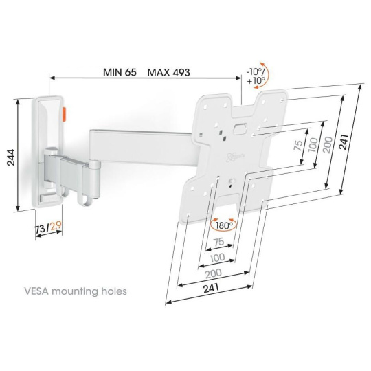 - Otočte televízor až o 180° vďaka 49 cm dlhým ramenám