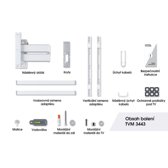 Jedným prstom môžete televízor presunúť do požadovanej polohy. Nástenný držiak TVM 3443 je vybavený funkciou One-Finger™ Movement. Vďaka špeciálnym ložiskám je pohyb nástenného držiaku veľmi plynulý a ľahký. Pre bezpečné nakláňanie a fixáciu televízora je držiak vybavený jedinečným systémom TiltAnchor™, ktorý uzamkne náklon TV vo zvislej polohe.