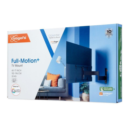 Štýlový. Bezpečný. Možnosť otočenia až o 180°. A špeciálne vyvinutý pre veľké televízory OLED. S týmto "rodinným" nástenným držiakom série COMFORT Full-Motion+ si svoj krásny OLED televízor užijete na maximum. Aj po rokoch intenzívneho používania funguje stále rovnako dobre ako prvý deň. Nástenný držiak je vhodný pre OLED televízory s úhlopriečkou 40 až 77 palcov a hmotnosťou do 35 kg.