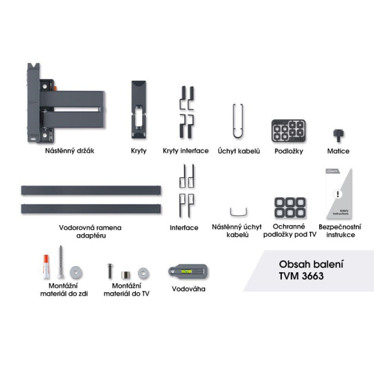 Tenký dizajn rámu držiaka TVM 3665 plne zodpovedá minimalistickému dizajnu vášho OLED televízora. Vďaka dobrému pozorovaciemu uhlu nepotrebujete funkciu nakláňania a televízor môžete ľahko zabezpečiť v požadovanej polohe pomocou systému TiltAnchor™.
