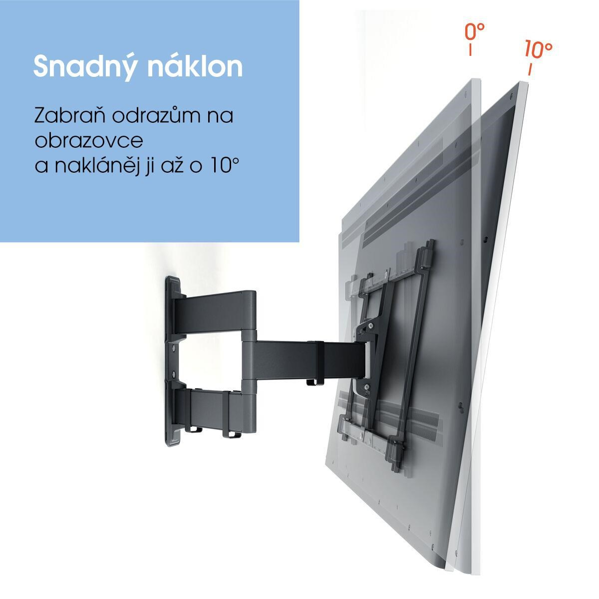 - Jednoduché naklápanie - vyhnite sa odleskom a skloňte TV až do uhla 10°, zabezpečenie a uvoľnenie pomocou TiltAnchor™