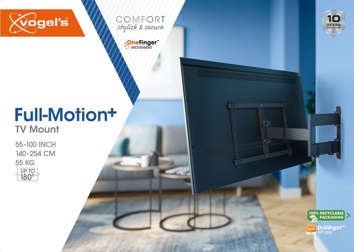 S nástenným držiakom rady COMFORT Full-Motion+ máte istotu bezpečného riešenia. Každý nástenný držiak televízora je certifikovaný TÜV a testovaný na trojnásobok svojej maximálnej nosnosti. Poskytovanie des desetročnej záruky má svoj dôvod.
