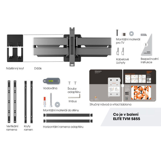 Ako hrdý majiteľ veľkého prémiového televízora chcete mať úplnú istotu, že je bezpečne namontovaný. TVM5855 vám tento pokoj zabezpečí. Má certifikát TÜV a je testovaný na trojnásobok svojej maximálnej nosnosti, takže spĺňa najvyššie bezpečnostné požiadavky.
