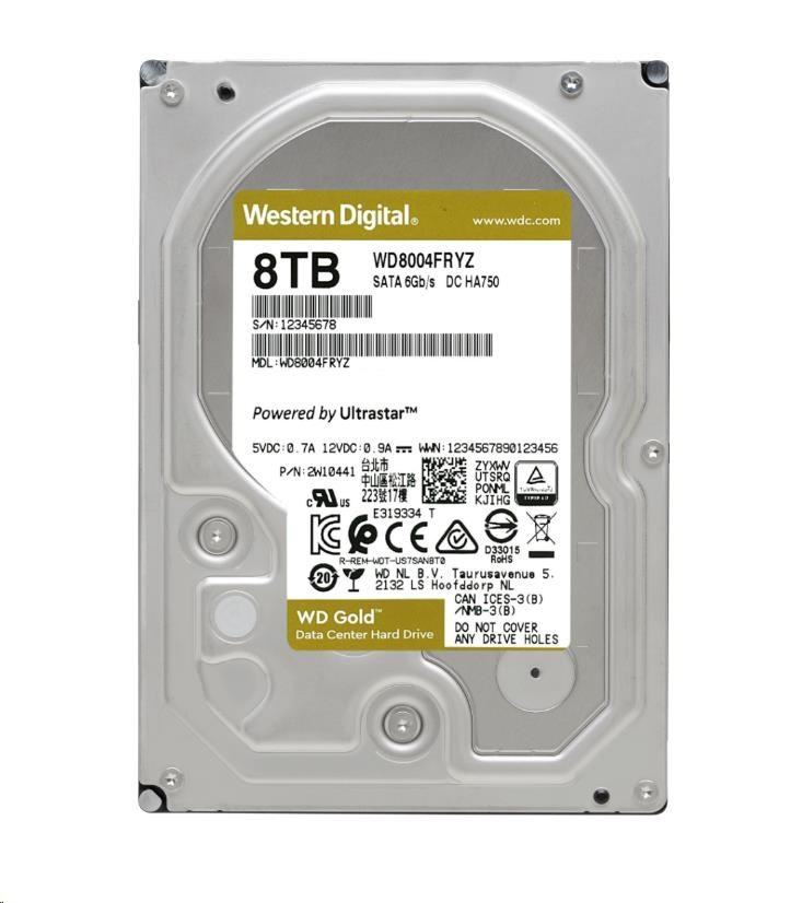 WD GOLD WD8004FRYZ 8TB SATA/ 6Gb/s 256MB cache 7200 otáčok za minútu, CMR, Enterprise