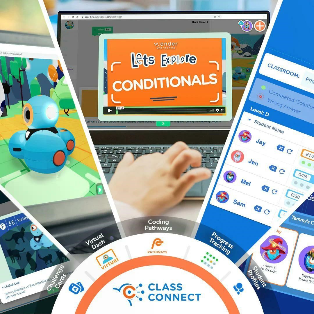 Wonder Pack obsahuje všetok hardvér a softvér, ktorý potrebujete na to, aby ste deťom v triedach sprístupnili programovanie! Toto balenie obsahuje Sketch Kit, ktorý z robota Dashe urobí kresliaci nástroj. Súčasťou je tiež Launcher, Gripper Building Kit a dvojica LEGO konektorov – ideálny spôsob, ako získať kompletnú sadu príslušenstva! Súčasťou tohto balenia je aj ročná licencia na Class Connect pre 2 študentov. Vďaka platforme Class Connect majú žiaci k dispozícii rozsiahle zásoby lekcií, aktivít a hádankových úloh, ktoré môžu plniť v aplikácii Blockly a naučiť sa tak dôležité zručnosti v oblasti programovania a aplikovať ich na reálne príbehové výzvy. Obsah balenia: Dash robot Sketch Kit Launcher Gripper Building Kit Building Brick Connectors